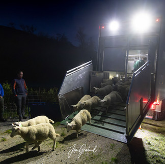Når vi er tilbake på grusplassen der resten av sauene står og venter, rygger Steffen bilen inntil hengeren. Med raske grep åpner han både bil og henger. Han forflytter dyrene profesjonelt og effektivt fra hengeren og inn i den tomme bilen, alltid med et smil som viser at han virkelig trives i jobben med dyr, og vet hvordan han skal håndtere dem med omsorg og bestemthet.